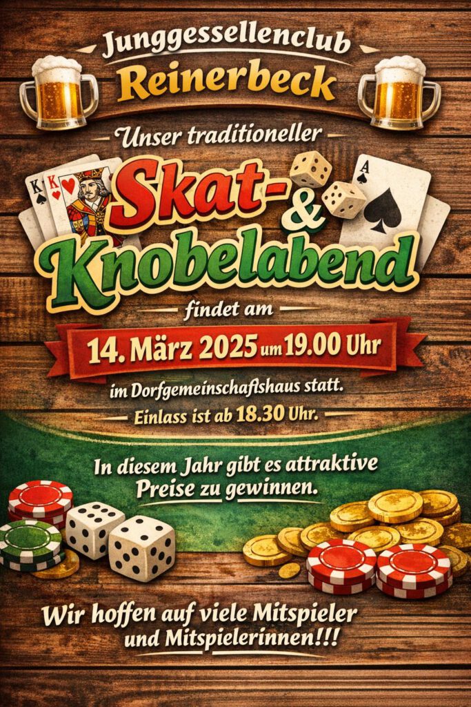 findet am 14. März 2025 um 19.00 Uhr im Dorfgemeinschaftshaus statt. Einlass ist ab 18.30 Uhr.